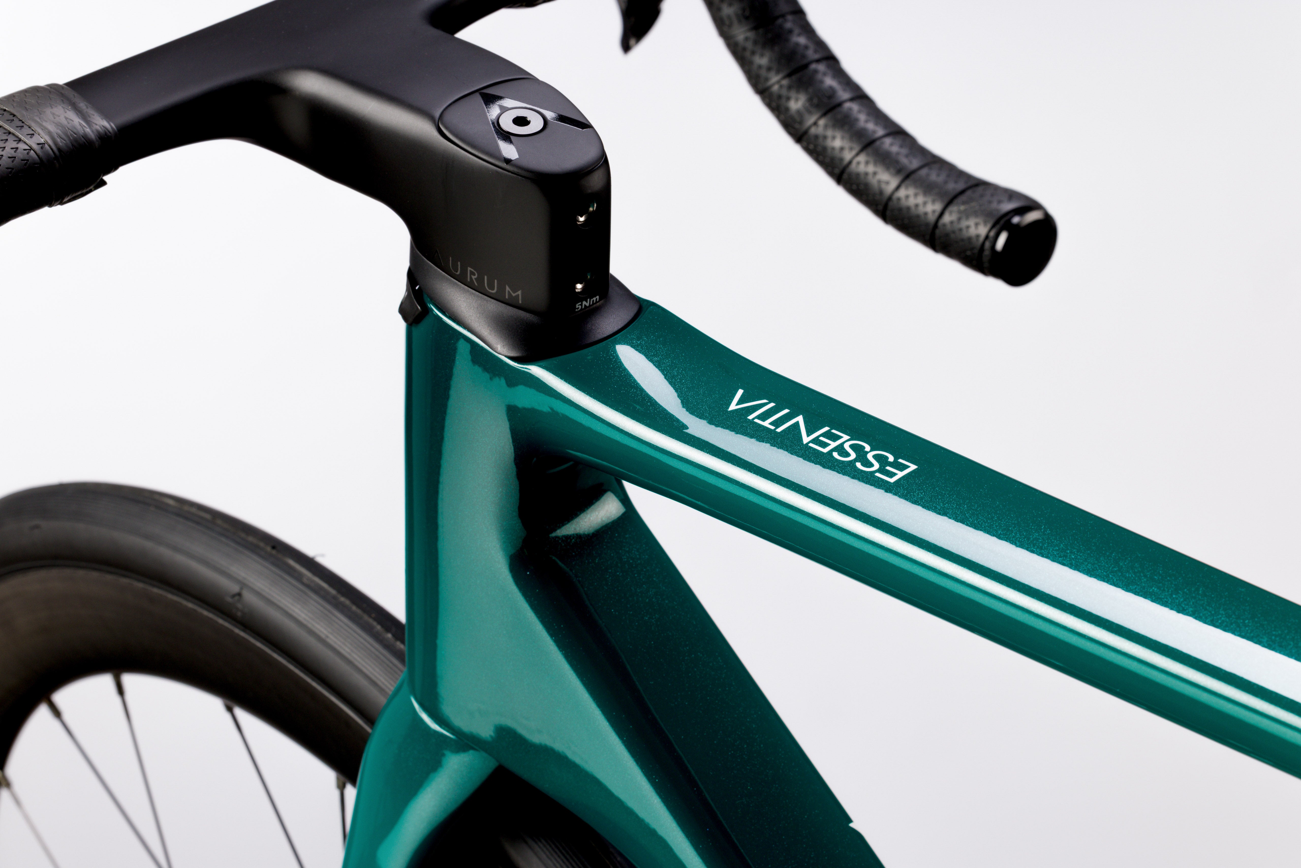 At the heart of ESSENTIA lies AURUM proprietary ECT-9 carbon construction, crafted using up to five types of high-modulus carbon fiber. Each layer is laser-cut and shaped with millimetric precision around an EPS core, achieving an ideal balance between stiffness, weight, and durability. The result - a frame that maximizes power transfer without compromising comfort.